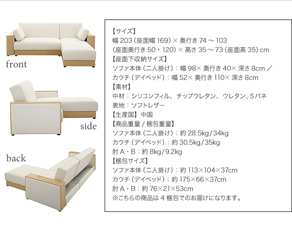 コーナーカウチソファ/ブラン